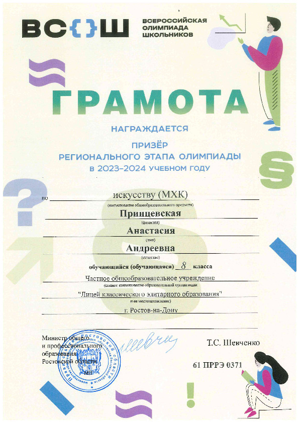 Призёры Регионального этапа Всероссийской олимпиады школьников